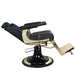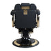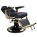 Designed for precision and versatility, it includes a powerful 250 kg lockable hydraulic pump, an adjustable inner headrest, a ribbed matte black footrest, and cushioned armrests, providing barbers smooth operation and clients superior support. The gold base with black pump cover adds both stability and sophistication, making this chair a standout piece in any salon.