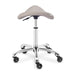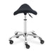 The DSSE Saddle Medi Stool features a padded ergonomic seat upholstered in anti-microbial medical-grade vinyl with memory foam for superior comfort and support. Its design encourages healthy posture and balance, reducing strain during long treatments. The chrome five-star base with 50mm professional roller wheels provides stability and smooth movement, making it ideal for salons, clinics, and treatment spaces.